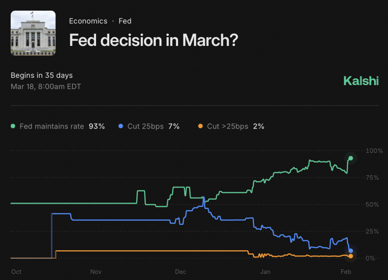 As for Kalshi predictions, looking a little further out, that market at least sees a 50% chance the Fed will cut in June; that’s when Warsh will firmly be in the chair. But 50% isn’t necessarily a bullish forecast.