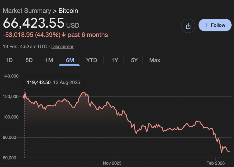 For the hell of it, Bitcoin still having a bit of a slump, too, evident on the six month chart below.