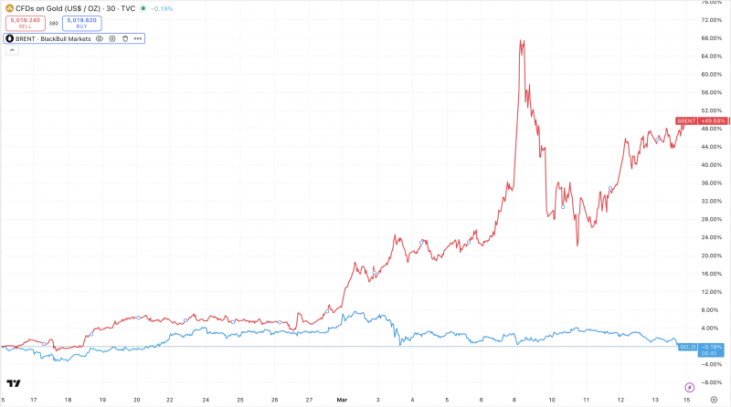 Over the last two weeks, a pattern has become clear. When oil goes up, gold goes down. Investors are rotating between the two, and for now, it looks like the market collectively reckons gold @ US$5K/oz is just about enough for now.