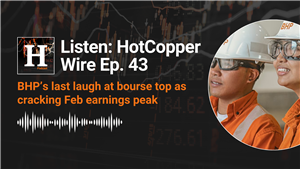 Listen: HotCopper Wire Podcast #043 – BHP gets the last laugh at bourse top as cracking Feb earnings peak In this week’s HotCopper Wire episode, Isaac McIntyre and Jonathon Davidson keep rolling on with earnings, starting with BHP (ASX:BHP) reclaiming its throne (we just covered CBA (ASX:CBA) back on top last episode!) as well as Woodside (ASX:WDS), Seven West Media (ASX:SWM), an... 26 Feb 2026 09:17 (AEDT)