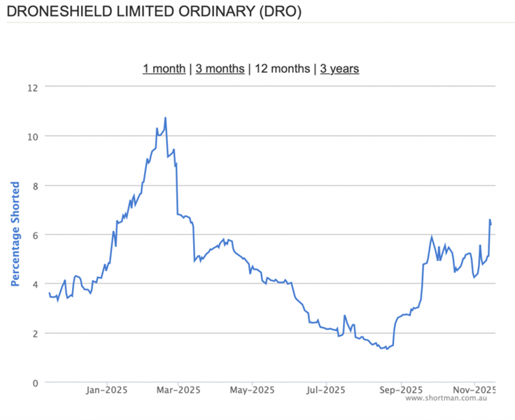 Droneshield’s short action as line chart (Shortman)